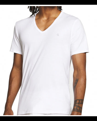 Calvin Klein Biały T-Shirt Serek V-Neck Logo CK